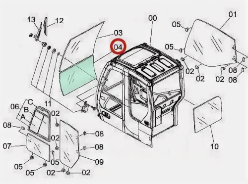 Стекла КАБИНЫ Hitachi ZX – 1 серия
